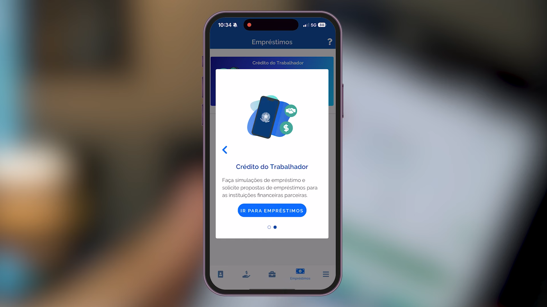 - Acesse a aba Crédito do Trabalhador e escolha a opção "Empréstimos";